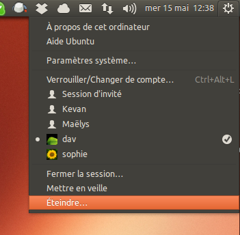 - Ouvrez le menu en haut à l'extrême droite du bureau, en cliquant sur l'icône en roue dentée