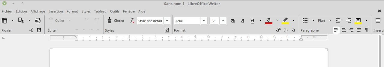 En Libre Office Writer, vous avez sélectionné la métabarre “barre groupée” et vous n'arrivez plus à revenir au mode précédent. Votre situation ressemble à celle illustrée ci-dessous ;