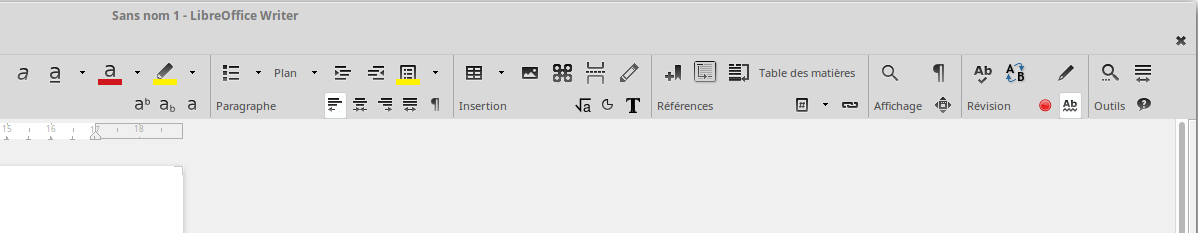 En Libre Office Writer, vous avez sélectionné la métabarre “barre groupée” et vous n'arrivez plus à revenir au mode précédent. Votre situation ressemble à celle illustrée ci-dessous ;